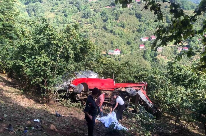 Giresun'un Tirebolu ilçesinde, fındık bahçesine personel taşıyan bir kamyonetin şarampole yuvarlanması sonucu 1 kişi...