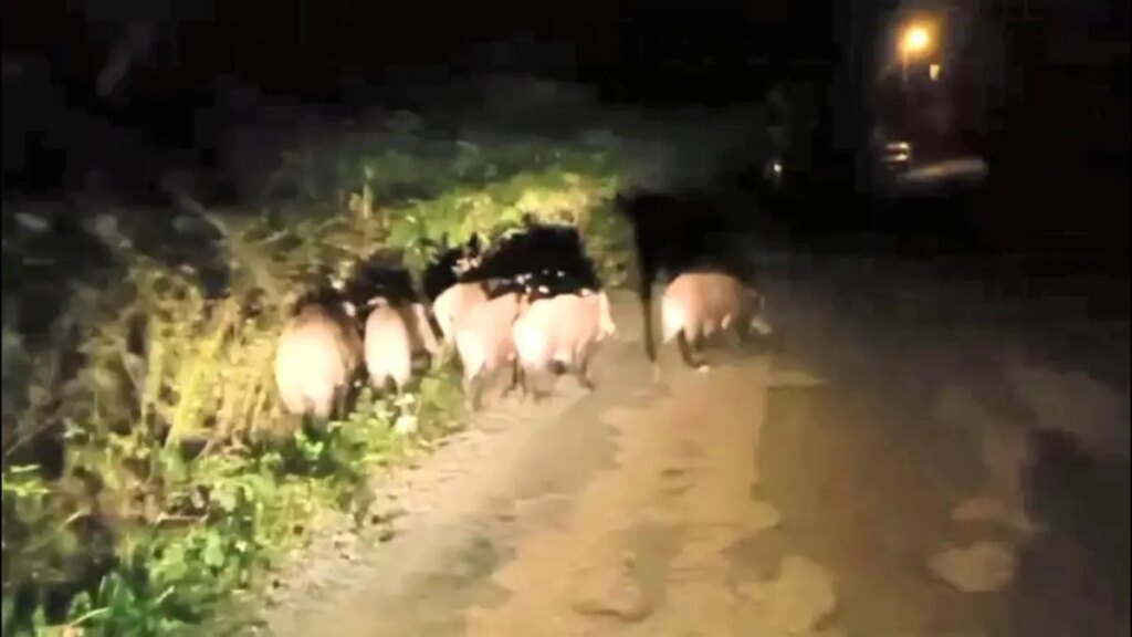 İlçenin Yenidivan Mahallesi’nde aç kalan domuz sürüsü gece saatlerinde mahalleye indi. 6 domuzun evvel yolda görüldüğü, akabinde mısır tarlasına girerek yiyecek aradığı anlar, o sırada aracıyla bölgeden geçen bir vatandaş tarafından cep telefonu kamerasıyla kaydedildi. İmajlarda domuzların sürü halinde hareket ederek mahalle yolundan geçtikleri, sonrasında ise tarlaya yöneldikleri anlar yer aldı.