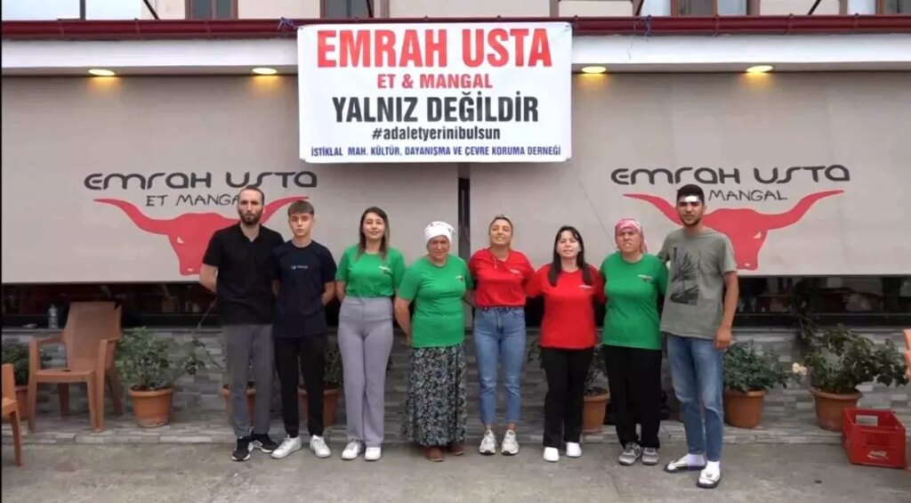 Öte yandan, işletme önüne dayanak hedefiyle gelen ilçe sakinleri “Emrah Usta yalnız değildir” yazılı pankartlarla dayanışma örneği gösterirken, olayın yaşandığı anları anlatan çalışanlardan Emine Karakaya ise “İki kişi ekmek ortası köfte siparişi verdi. Sipariş fazla olunca mutfağa gittim. Öbür taraftarlar içeri girip oturdu ve rahatsız edici biçimde gürültü yapmaya başladılar. Emrah abi onları uyarınca saldırmaya başladılar. Polis daveti üzerine de darp devam etti. Ellerine geçen masa, sandalye, şişe ile saldırıyorlardı. Bu sırada silah patladı lakin durmadılar” dedi. – GİRESUN