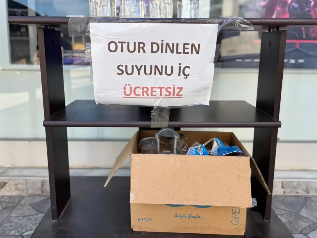 Altınordu ilçesi Şahincili Mahallesi’ndeki dükkanında bilgisayar tamiri yapan Mertcan Mercan, Ordu Devlet Hastanesi’ne giden yokuş yolu yaya olarak çıkan birtakım şahısların yorulduğunu ve susadığını fark etti. Mercan, yokuştaki dükkanının önüne masa ve sandalye koydu. Masanın üzerine de su bırakan Mercan, yokuş çıkarken yorulanların görebilmesi için ‘Otur, dinlen, suyunu iç. Ücretsiz’ yazan bir de yazı astı.